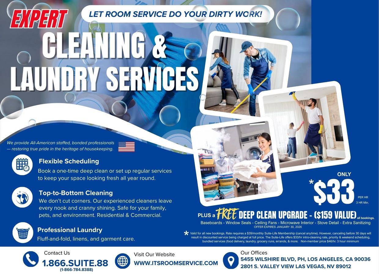 Step into a home transformed by true hospitality. Room Service Cleaning brings the refined precision of luxury hotel care directly to your doorstep — effortlessly elevating your daily life. Our all-American, bonded professionals handle every detail with warmth, pride, and polish, creating spaces that feel refreshed, restored, and undeniably delightful. From immaculate surfaces to thoughtfully finished touches, every visit feels like a breath of fresh air — delivered with the signature touch of The Suite-Life.
